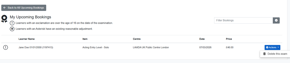 If you wish to change the original Public Centre your learner was entered for, please ensure that the new Centre’s closing date has not yet passed before cancelling and rebooking.